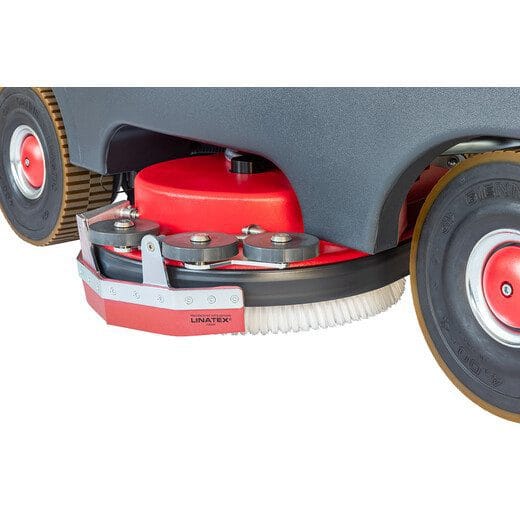 RA905, das Synonym für Wendigkeit, Schnelligkeit und Stabilität. Die geringe Breite ermöglicht das Durchfahren von Türen und das Wenden in sehr schmalen Gängen. Dank den vier Rädern ist die Maschine niedrig zum Aufsitzen, sehr stabil und verfügt über eine geringe Bodenpressung. Deshalb ist die RA905 speziell für Sportbeläge etc. geeignet. Der Hinterradantrieb sorgt zusammen mit einem starken Fahrmotor für ausgezeichnete Steigeigenschaften, selbst bei vollem Tank.