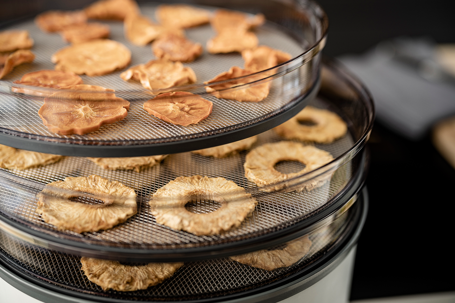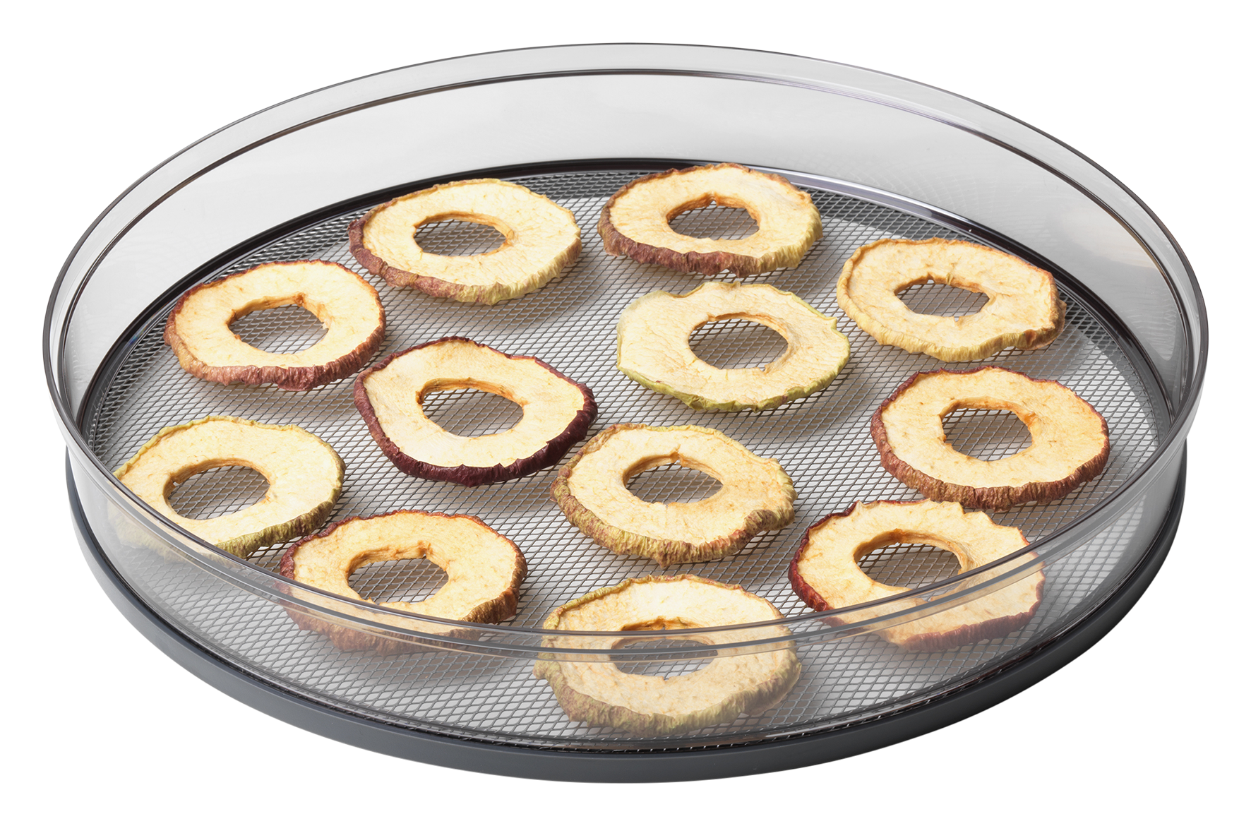 Mit zusätzlichen Dörrgittern lässt sich die Kapazität des Dörrgeräts erweitern. Das feinmaschige Gitter aus Edelstahl mit Kunststoffrahmen ist besonders gut zum Trocknen von Kräutern geeignet.