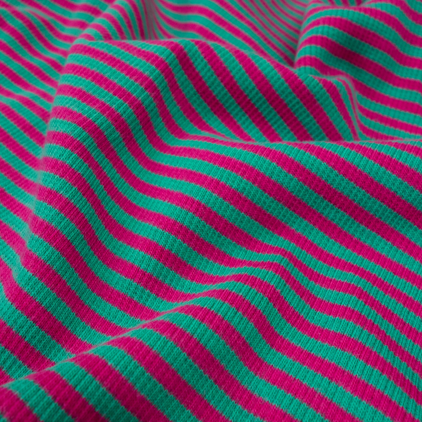 elastischer Bündchenstoff, pink, grün, feine Rippe, Streifen