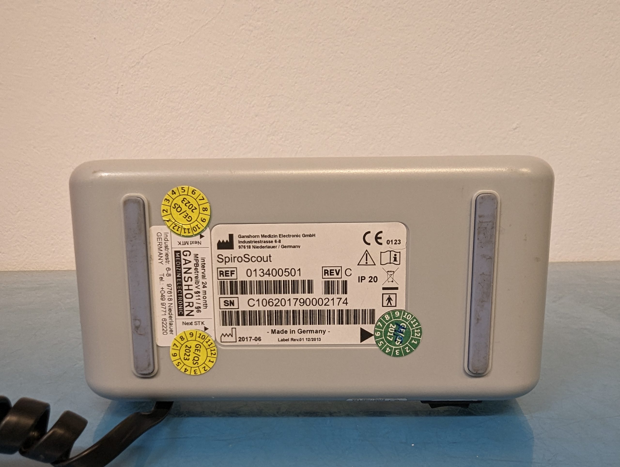 Der Ganshorn SpiroScout Scoutsensor V1 ist ein PC-Spirometer, das zur Durchführung von Lungenfunktionsuntersuchungen eingesetzt wird. Es handelt sich um ein tragbares Gerät, das eine einfache und präzise Messung der Lungenfunktion ermöglicht. Hier sind einige der Hauptmerkmale und Funktionen des SpiroScout Scoutsensor V1: