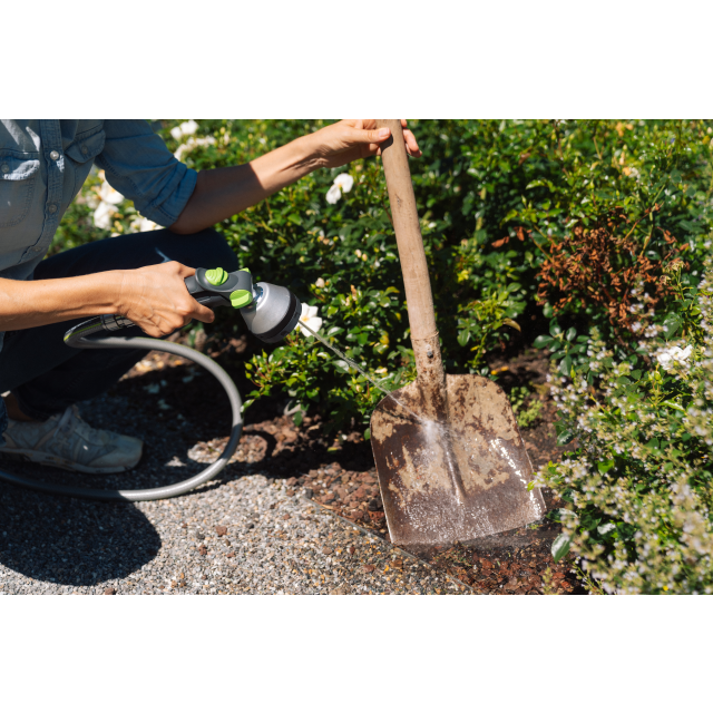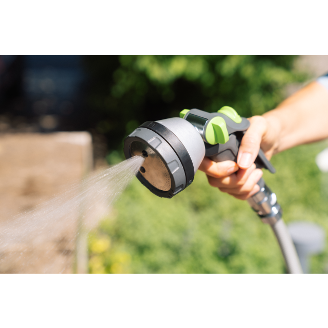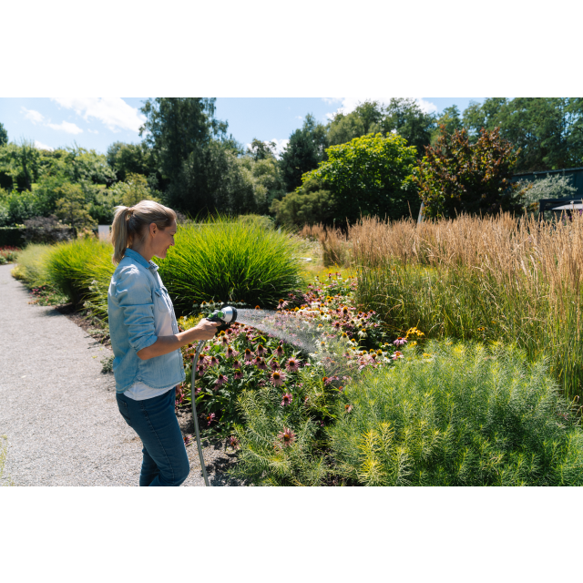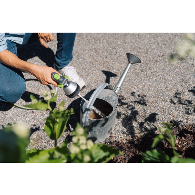 Kompakt und robust: Die GEKA plus Multibrause 3S mit Steck-Anschluss aus Metall bietet vielseitige Bewässerungsmöglichkeiten mit einfachem Handling.