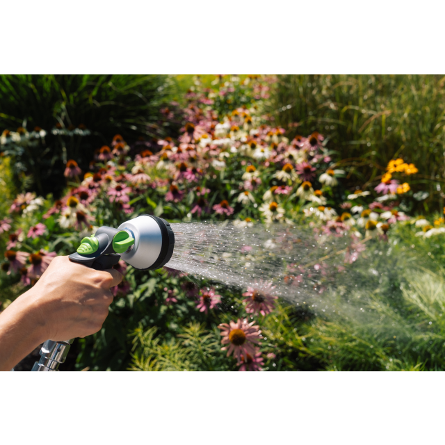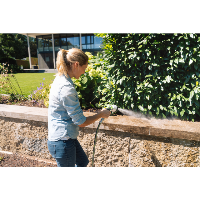 Die GEKA plus Multibrause 3S mit Steck-Anschluss, Metall, ist eine praktische Gartenbrause für verschiedene Bewässerungsaufgaben. Dank ihres robusten Metallgehäuses ist sie langlebig und widerstandsfähig gegen mechanische Beanspruchung. Der Steck-Anschluss ermöglicht eine schnelle und werkzeuglose Verbindung zum Gartenschlauch, was den Wechsel oder die Handhabung erleichtert. Mit drei verschiedenen Strahlarten lässt sich der Wasserfluss flexibel an unterschiedliche Anwendungen anpassen, ob zum sanften Giessen von Pflanzen oder zum kraftvollen Reinigen von Oberflächen. Die Multibrause liegt dank ergonomischem Griff gut in der Hand, was die Nutzung über längere Zeit angenehm gestaltet. Diese Kombination aus Funktionalität und einfacher Bedienung macht die GEKA plus Multibrause 3S zu einer praktischen Ergänzung für Hobbygärtner und professionelle Anwender.