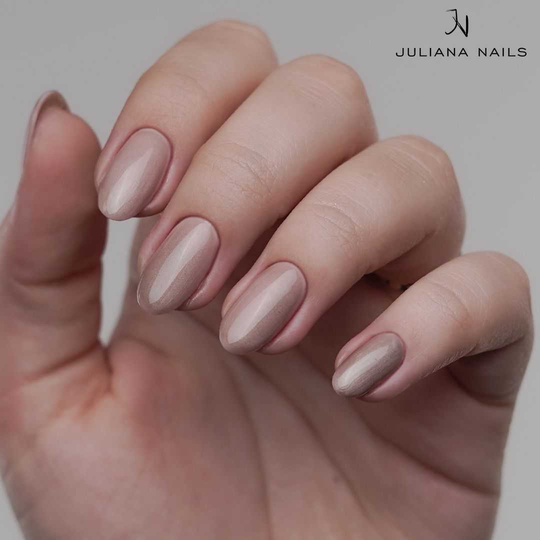 Unser Gel Lack Cat Eye Sleighbells ist ein goldiges Braun mit hauchzarten, schimmernden Pigmenten.