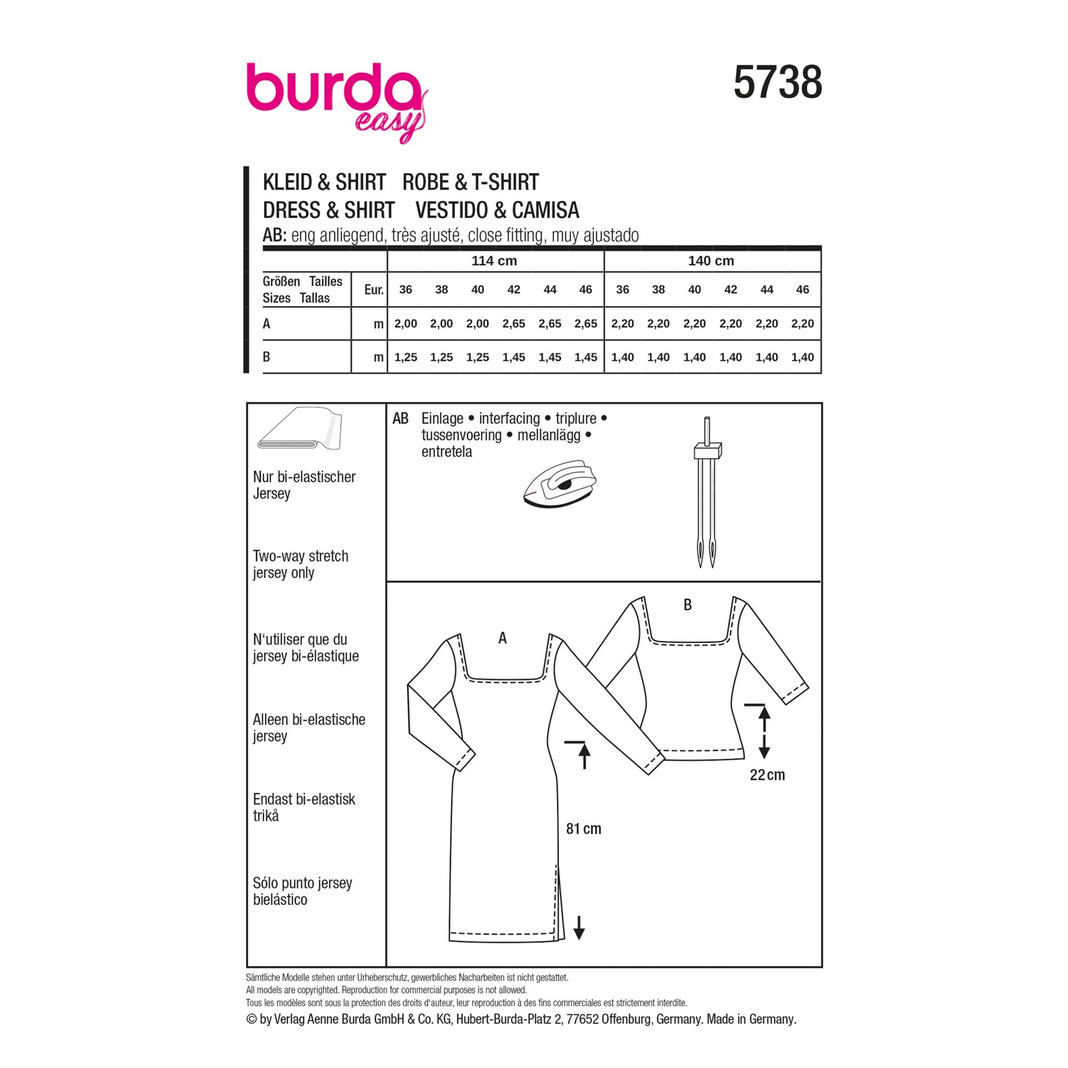 Schnittmuster von Burda easy mit Mehrgrößenschnitt in Originalgröße auf Papierbögen zum Auskopieren oder Ausschneiden – inkl. Nähanleitung.
