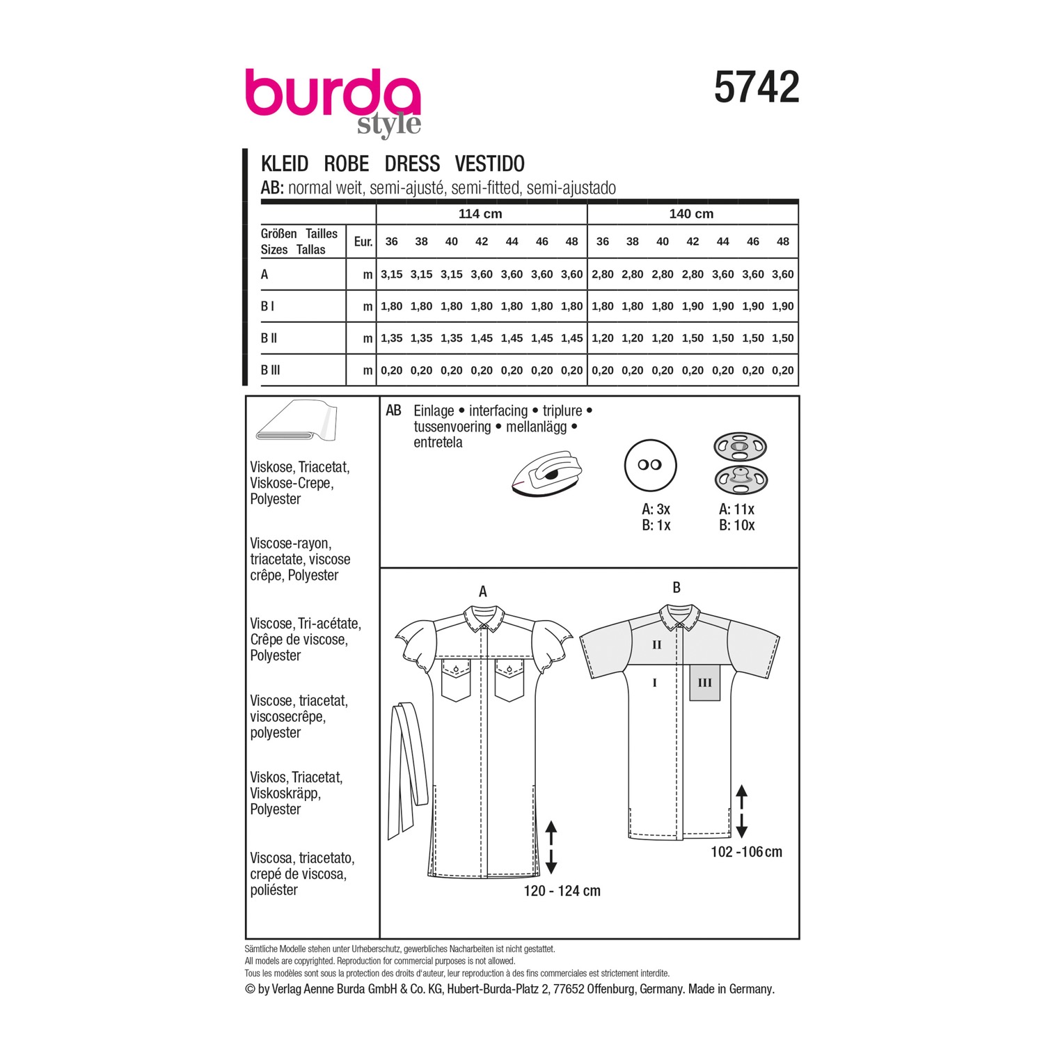 Schnittmuster von Burda style mit Mehrgrößenschnitt in Originalgröße auf Papierbögen zum Auskopieren oder Ausschneiden – inkl. Nähanleitung.