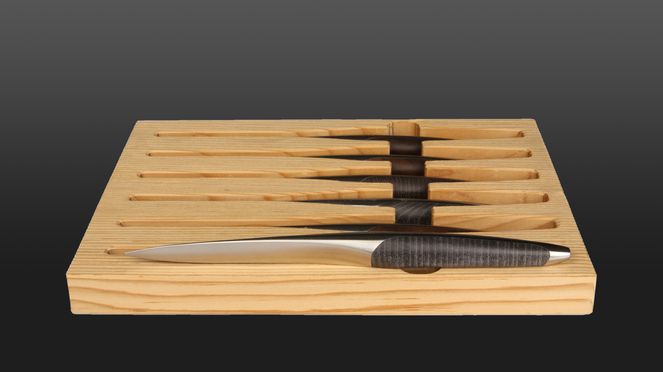 Die Tafelmesser swiss made werden im Emmental geschmiedet und in der Manufaktur sknife in Biel endgefertigt. Die Tafelmesser swiss made sind ein Set bestehend aus 6 hochwertigen Messern mit stabilisierten Eschenholzgriffen.