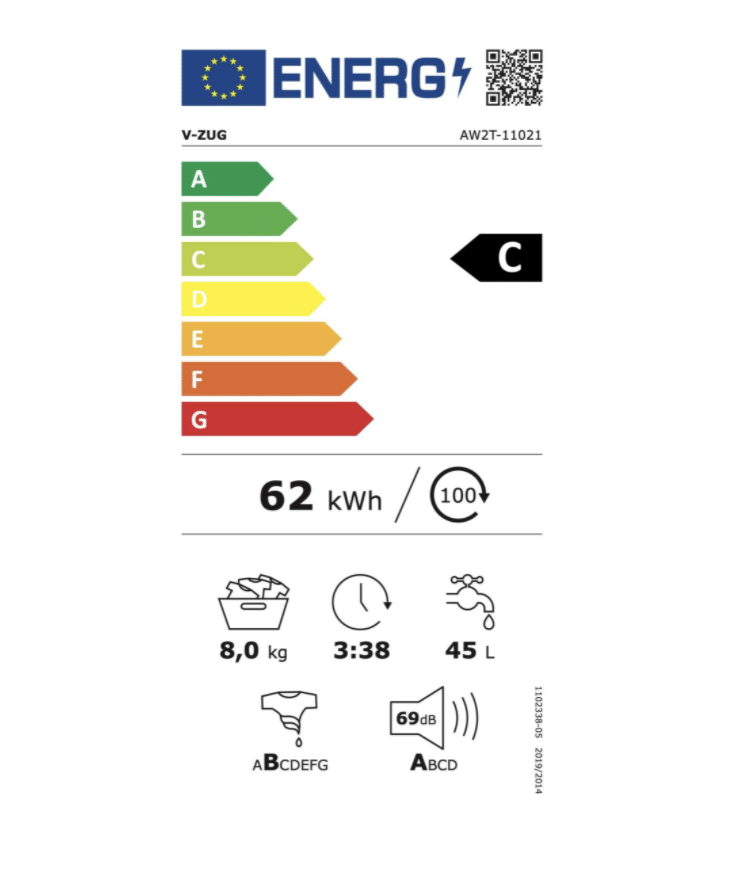 - gewichteter Energieverbauch 100 Zyklen: 62.0