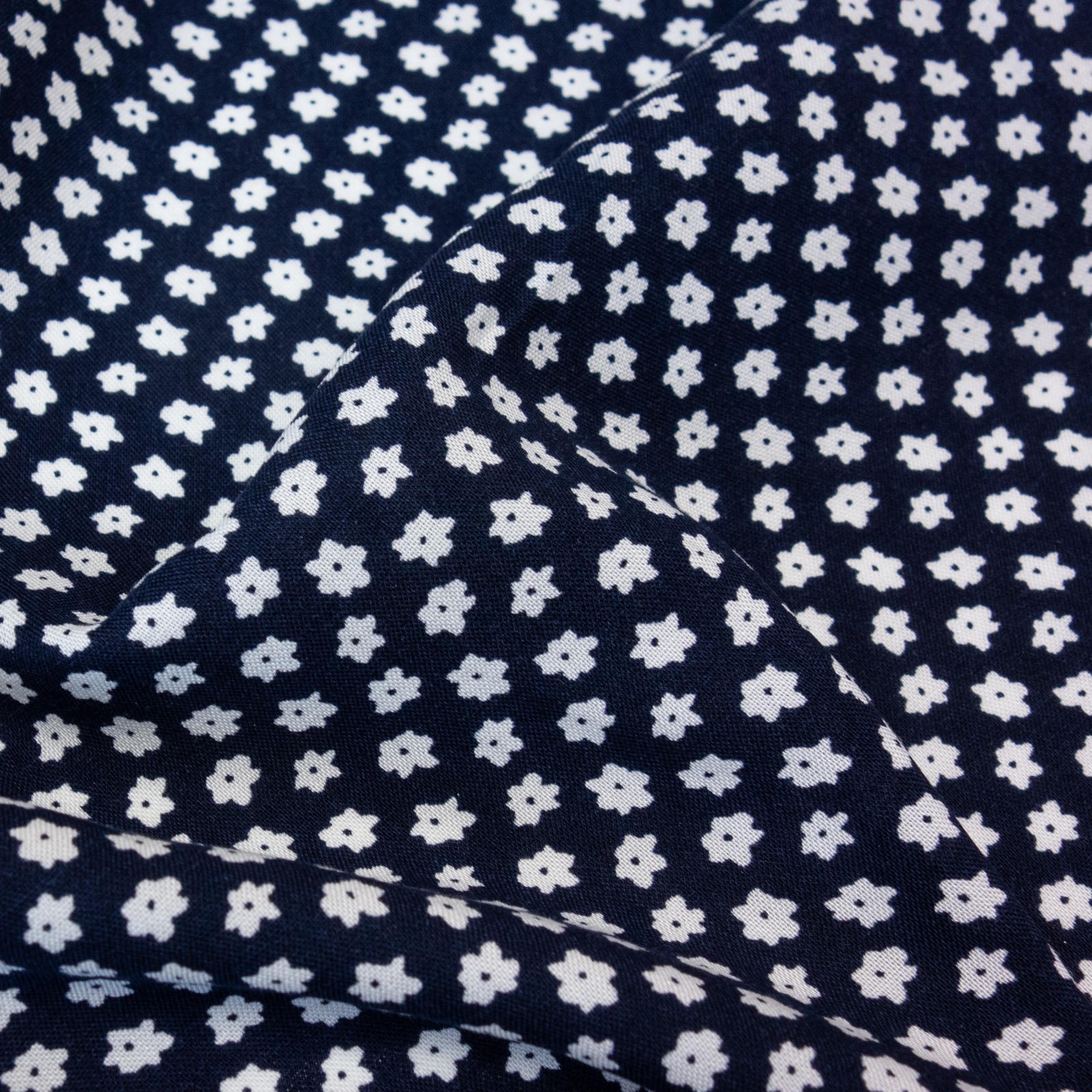 Feines und leichtes Gewebe aus reiner Viskose bedruckt mit grafisch angeordneten, kleinen Blüten. Geeignet z.B. für sommerliche Kleider, Blusen und Hemden.