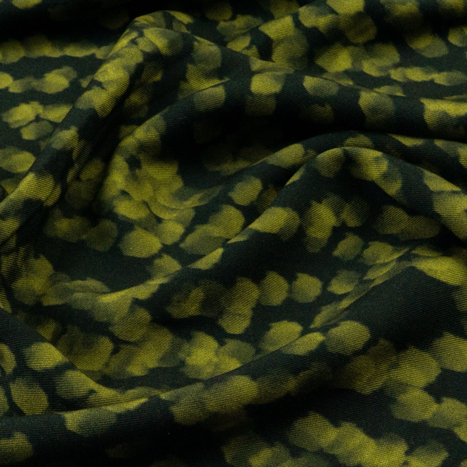 Viskosestoff, Twill, grüntöne, schwarz, abstrakt gemustert