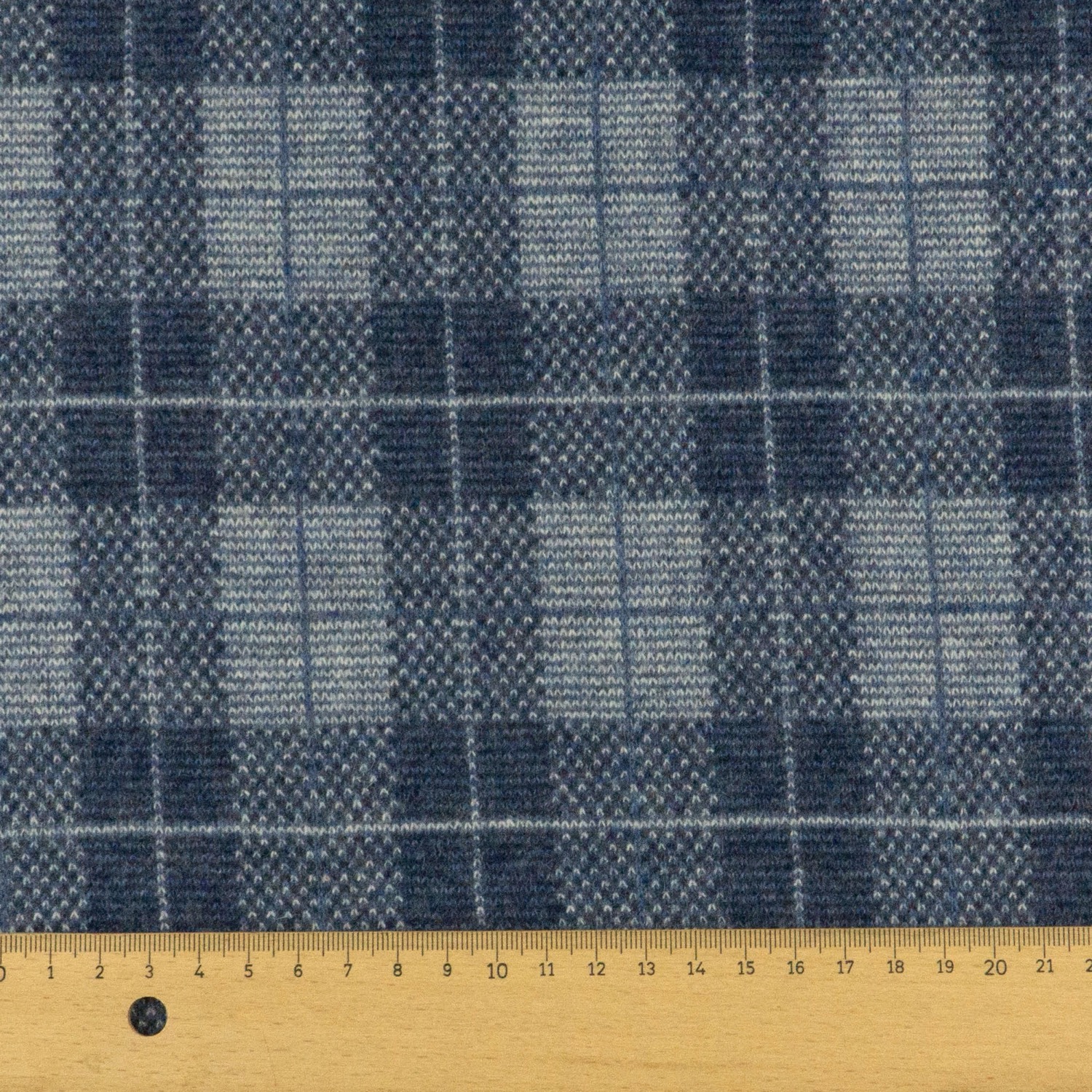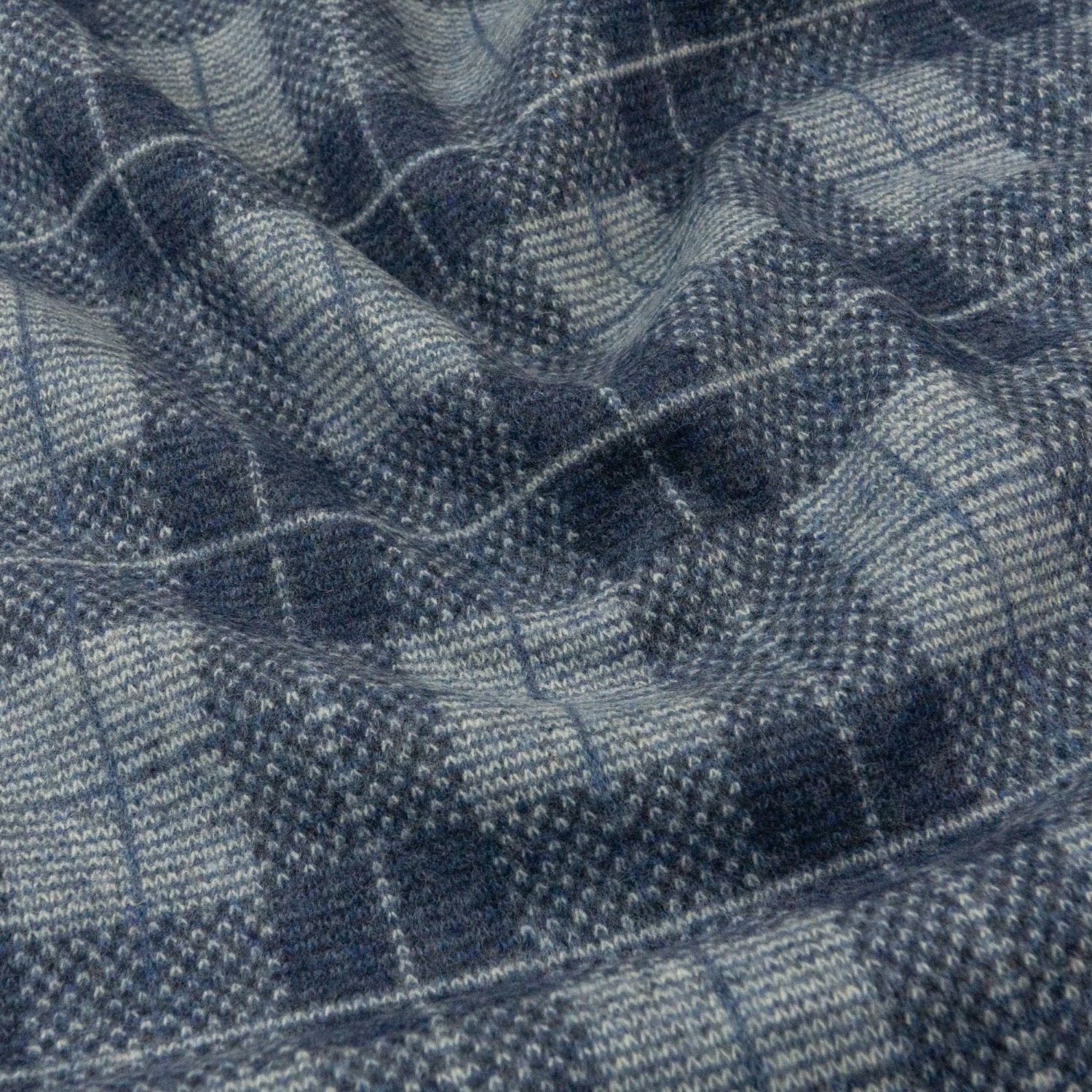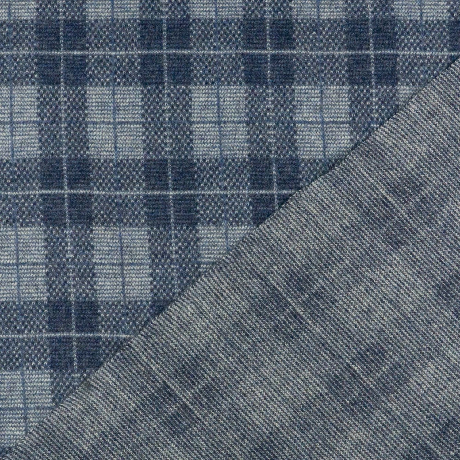 Wollstoff, Strickjacquard, blau, hellgrau, Karo